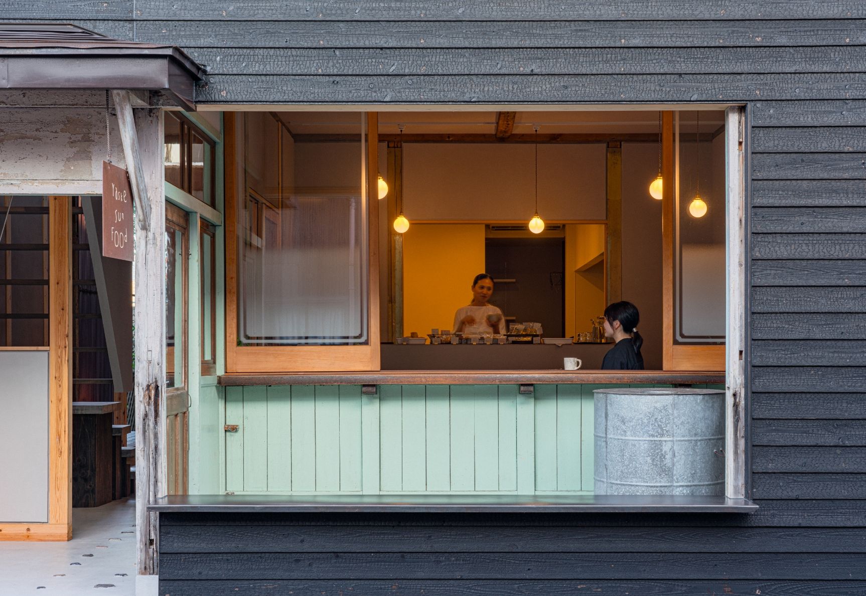 古い木の窓枠や梁、外観のレトロな雰囲気はそのままに、