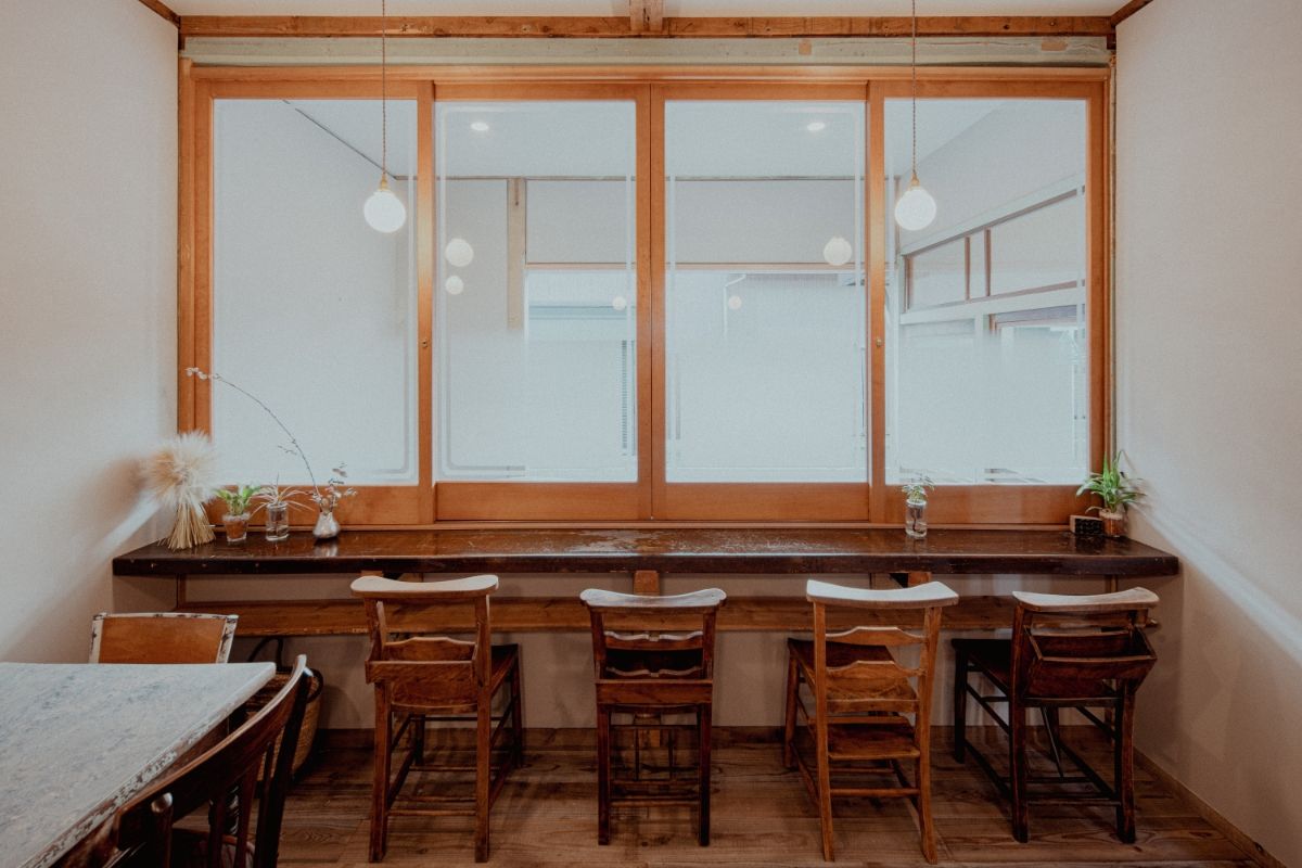 古い木の窓枠や梁、外観のレトロな雰囲気はそのままに、
